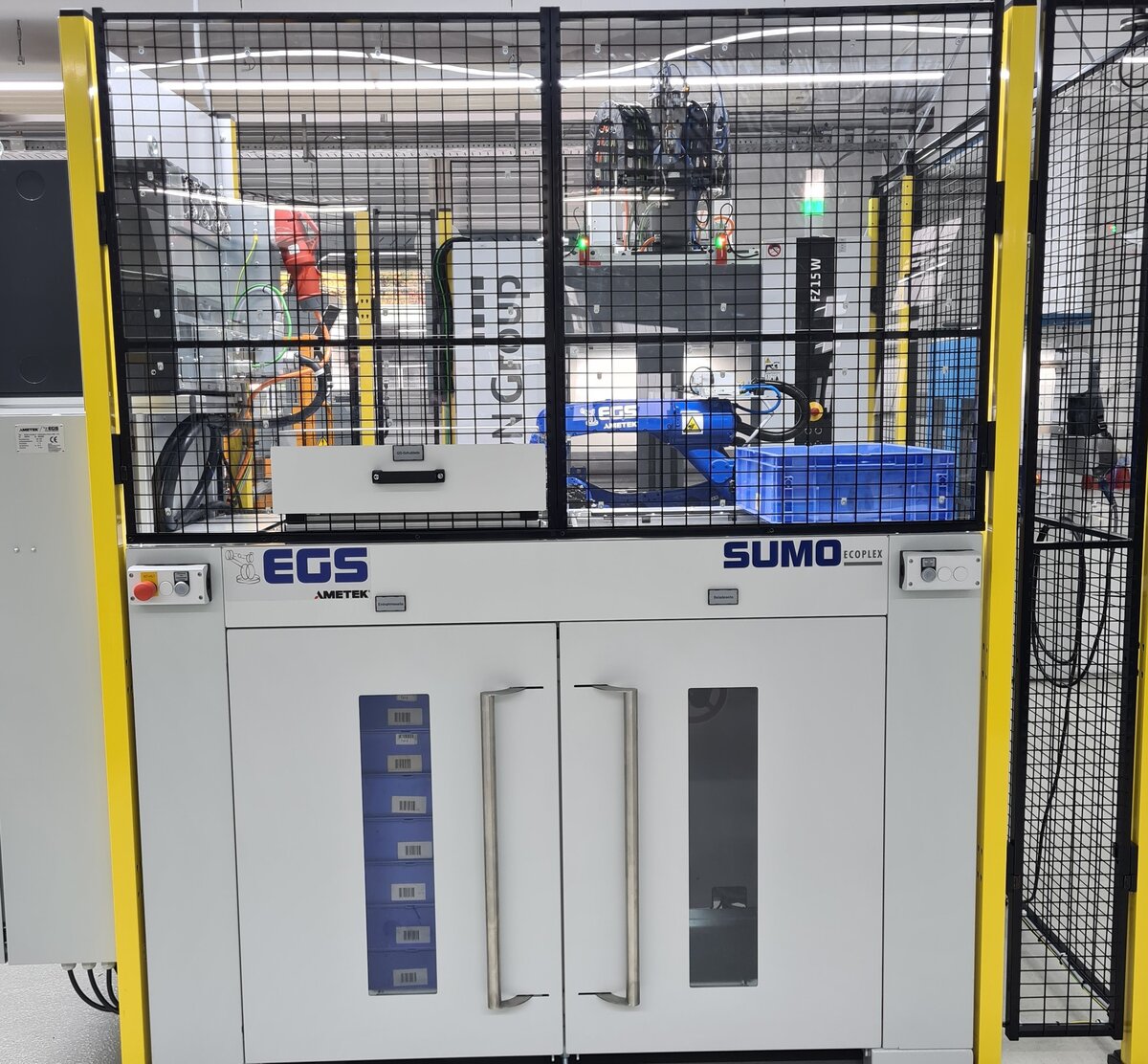 Picture: The SUMO Ecoplex2 can be loaded in automatic mode through its two front doors using floor rollers stacked with workpiece carriers.